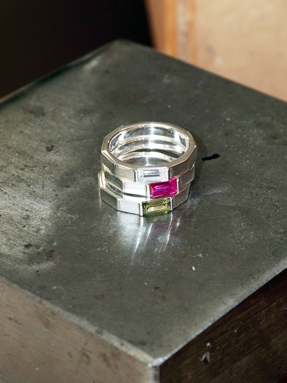 SQUARE STONE RING SILVER MOISSANITE