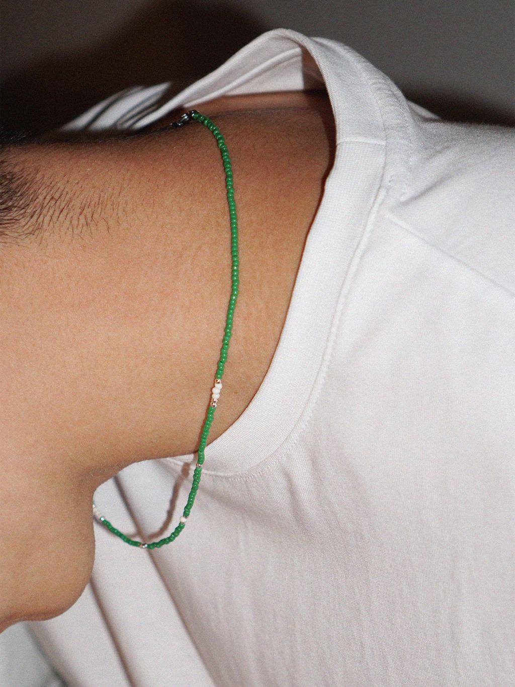 LOVE SKINNY BEADS NECKLACE GREEN (M)